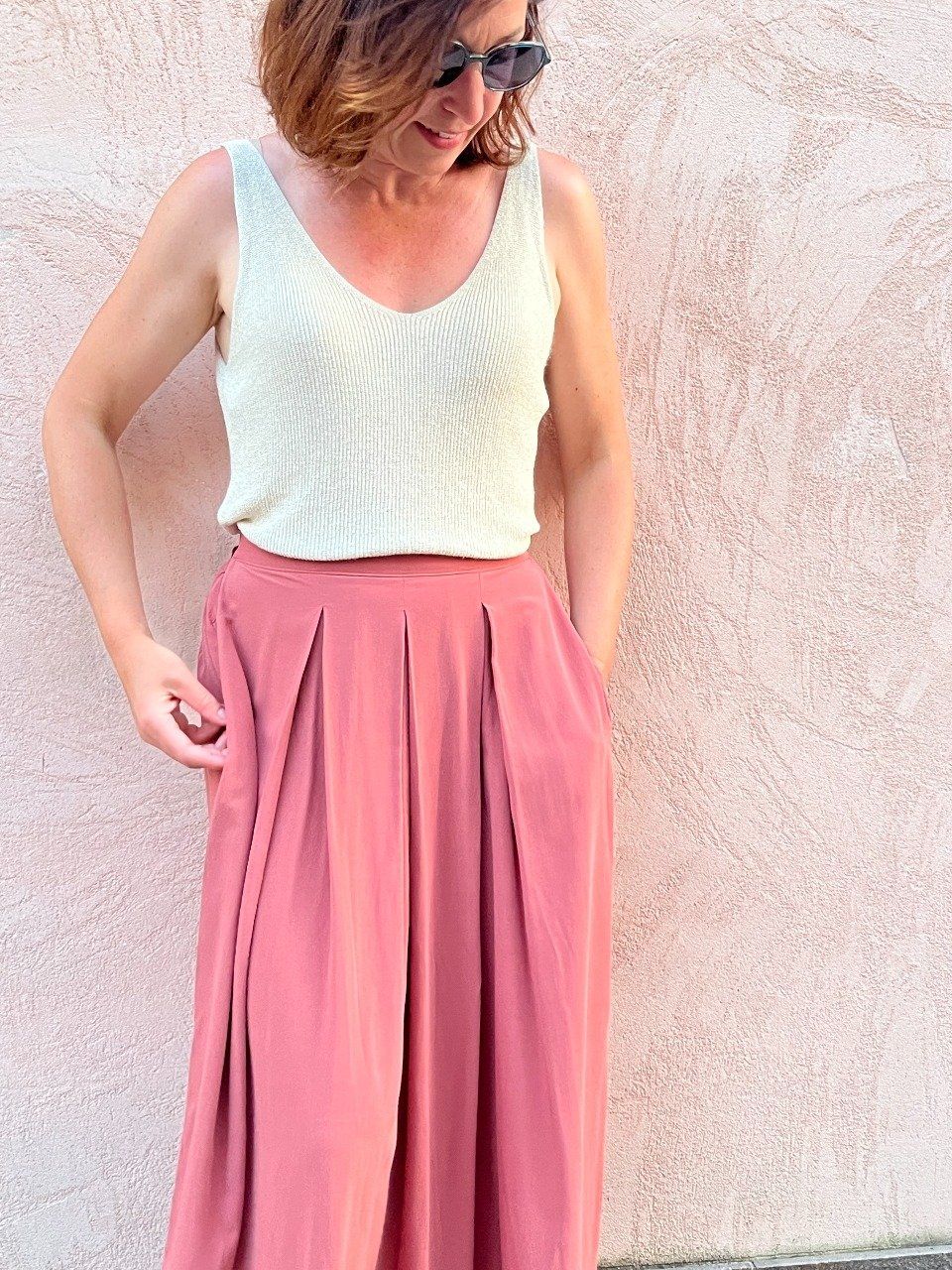 Eolya est une jupe longue qui allie élégance et intemporalité. Ses trois plis creux et sa ceinture plate sur le devant créent une silhouette épurée, tandis que le dos froncé avec sa ceinture élastiquée offre un confort optimal et un ajustement facile. La fente latérale ajoute de la fluidité à vos mouvements, et les poches côté en option la rendent encore plus pratique. Eolya est le projet idéal pour les couturières recherchant une création facile à réaliser, confortable et adaptable à un style chic ou bohème selon les tissus choisis. Cousez votre jupe longue en fonction des saisons, en toute simplicité !