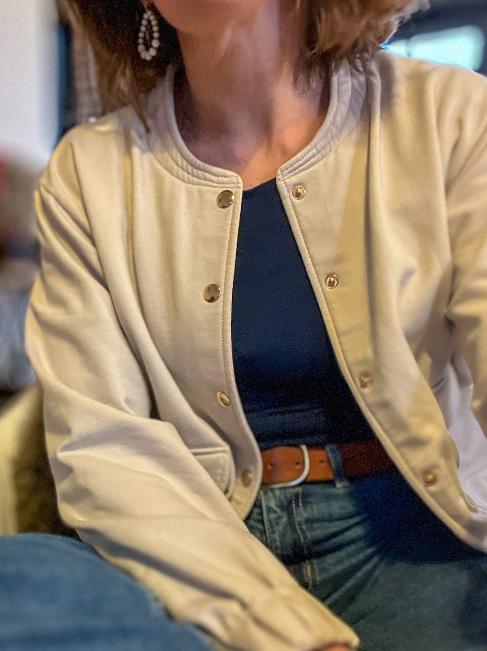 La veste Snap peut se coudre dans différents tissus : en sweat ultra-doux, type French terry pour un confort absolu, en denim souple pour un style indémodable ou gabardine pour un look plus structuré...(Légèrement stretch pour le confort). Chaque tissu donnera à votre veste une allure unique.