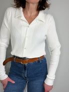 Le chemisier Stretchy se coud dans un tissu maille d’au moins 30 % d’élasticité.