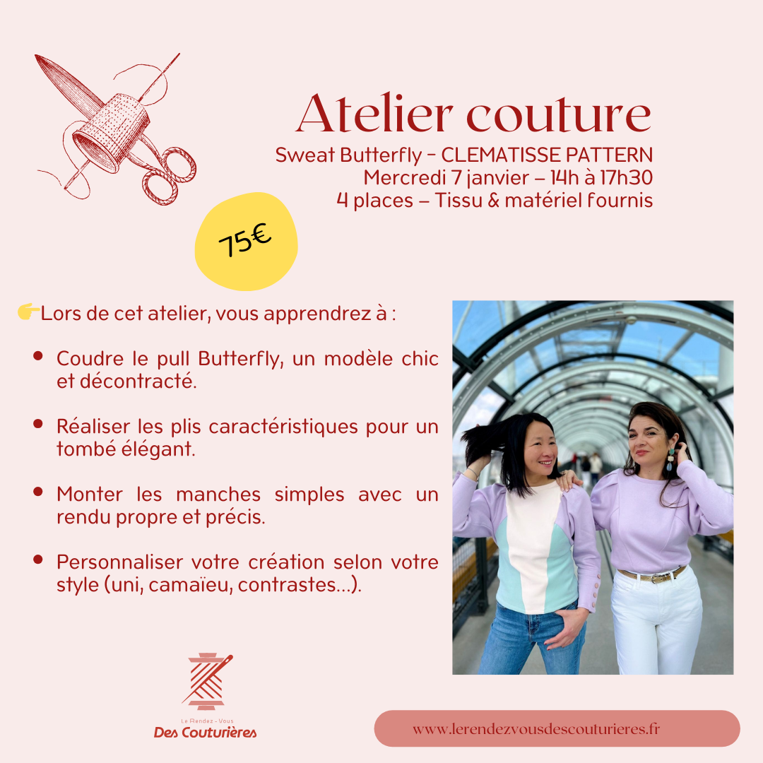 Réservation Atelier Couture 07/01/2026 17h - 20h30 - Sweat BUTTERFLY - CLEMATISSE PATTERN
