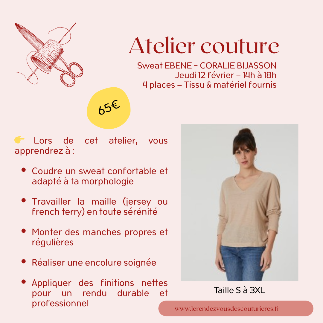 Réservation Atelier Couture 12/02/2026 14h-18h - "Sweat EBENE - CORALIE BIJASSON"