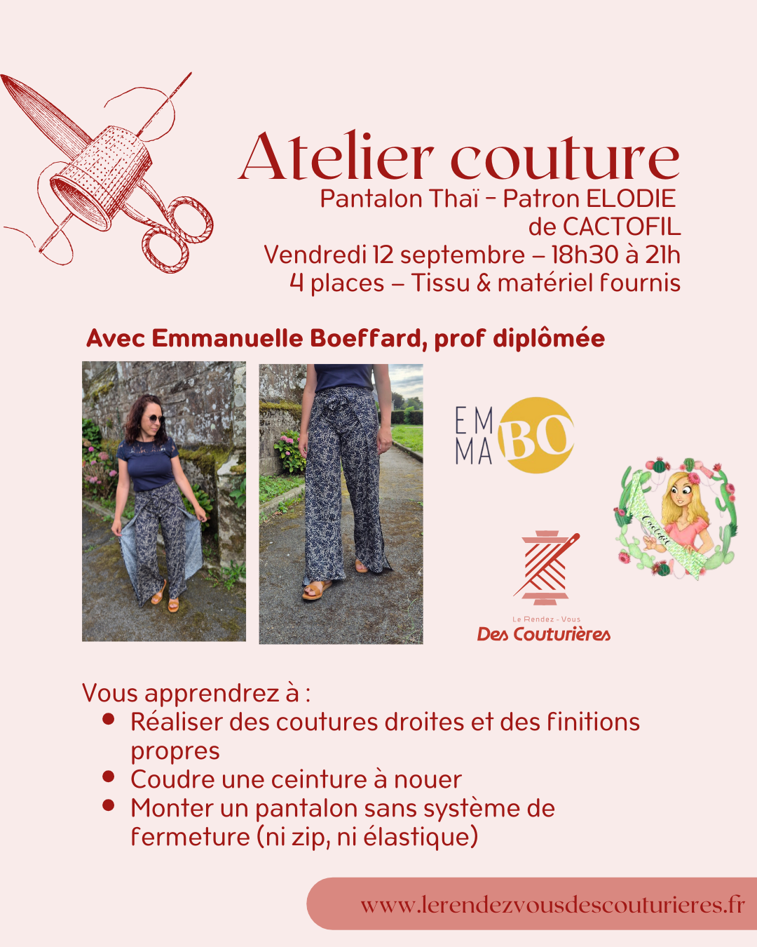 Réservation Atelier Couture 12/09/2025 18h30-21h - "Pantalon ELODIE - CACTOFIL"