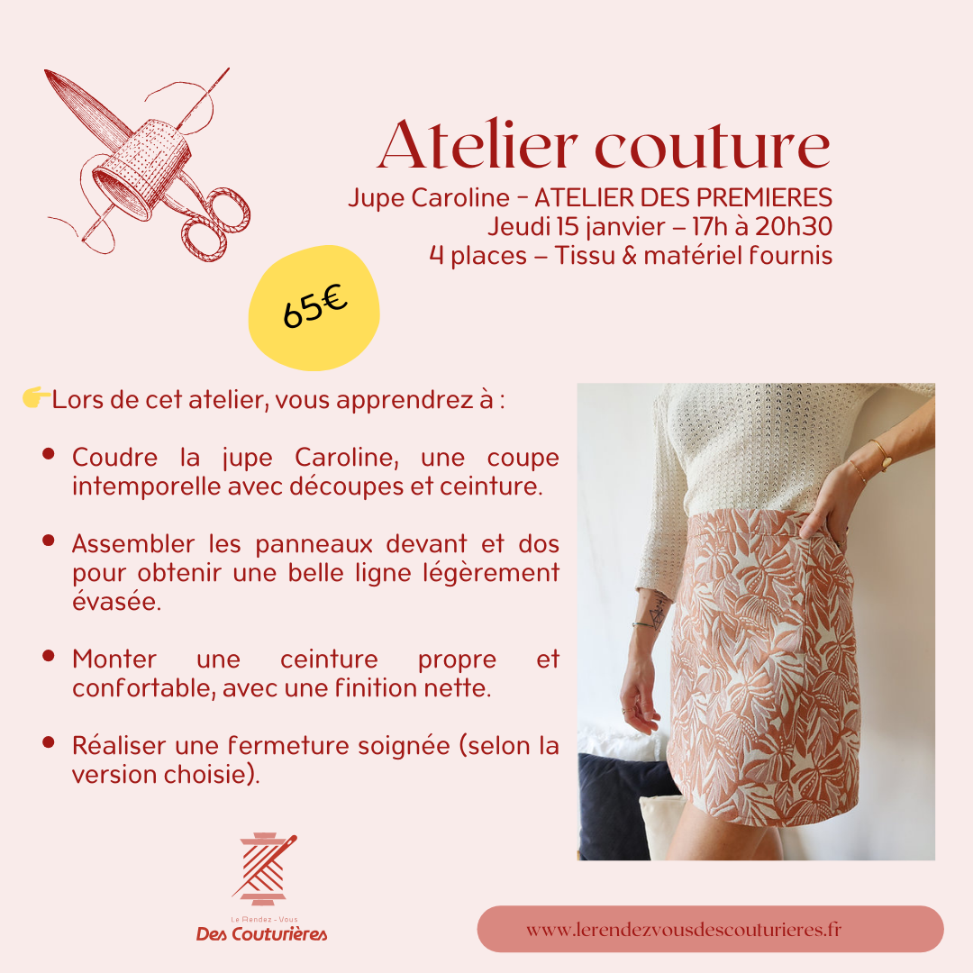 Réservation Atelier Couture 15/01/2026 17h - 20h30 - Jupe CAROLINE - ATELIER DES PREMIERES