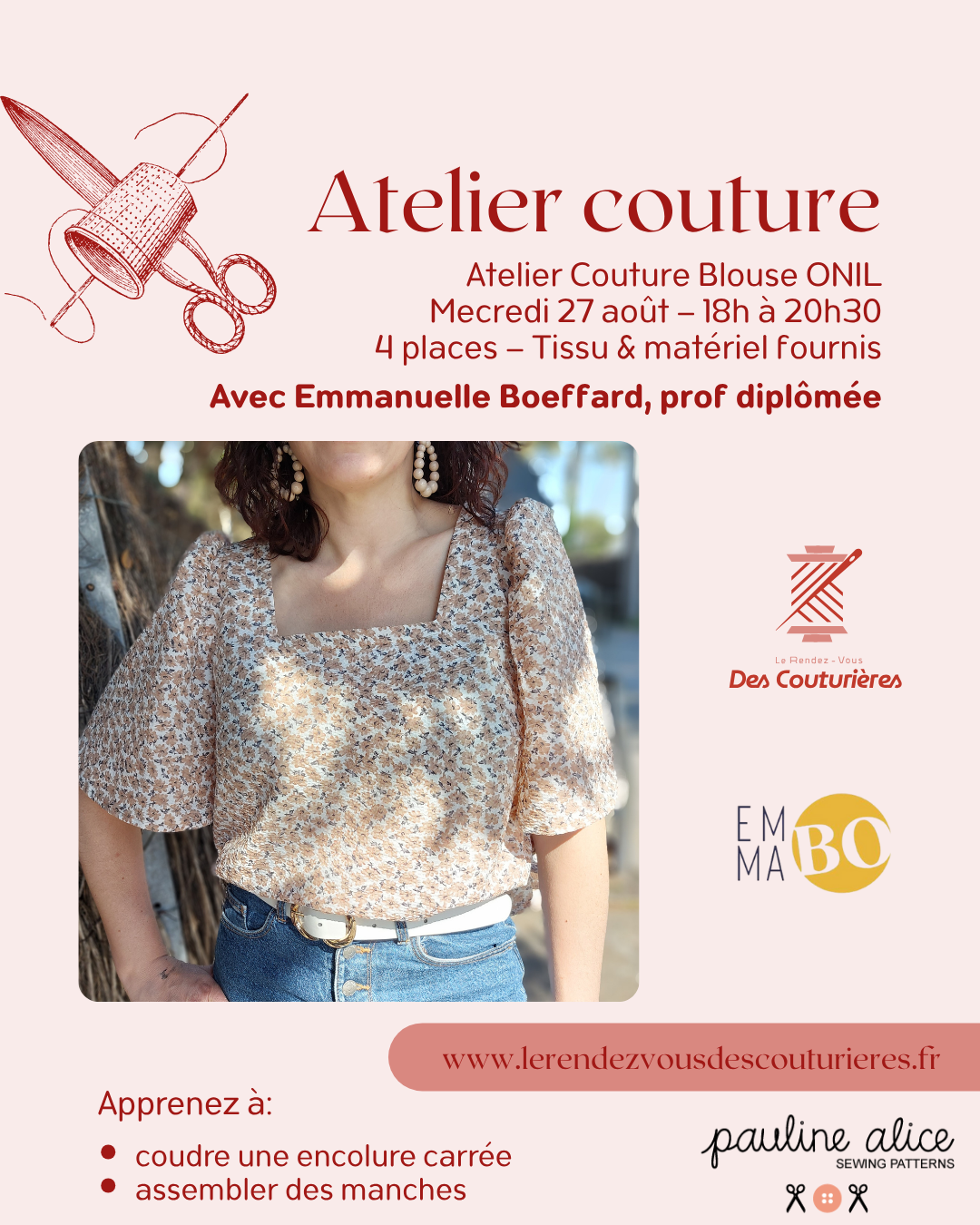 Réservation Atelier Couture 27/08/2025 18h-20h30 - "Blouse ONIL - PAULINE ALICE PATTERNS"