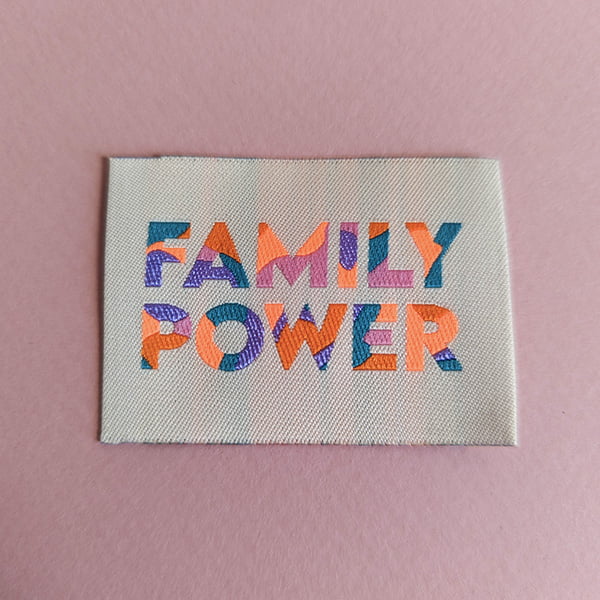Etiquettes à coudre "FAMILY POWER" - à l'unité 55 x 40 mm