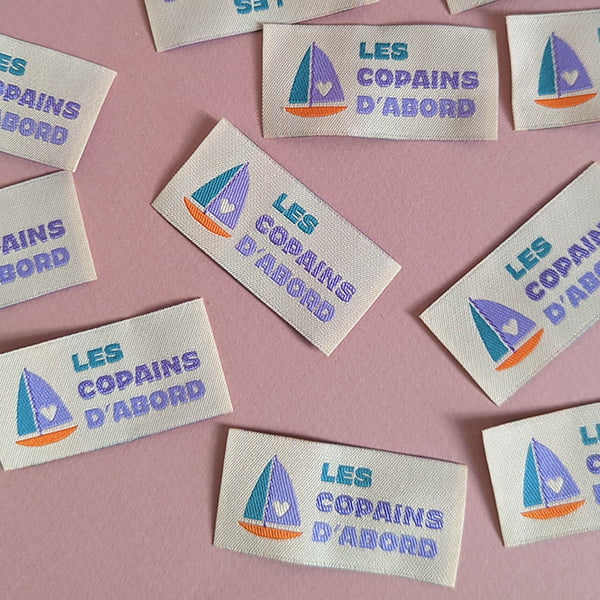 Etiquettes à coudre "Les copains d'abord" - à l'unité 52 x 26 mm