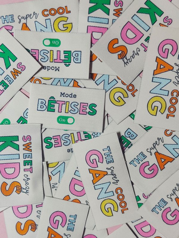 Etiquettes à coudre "Mode BETISES" - à l'unité 58 x 35 mm