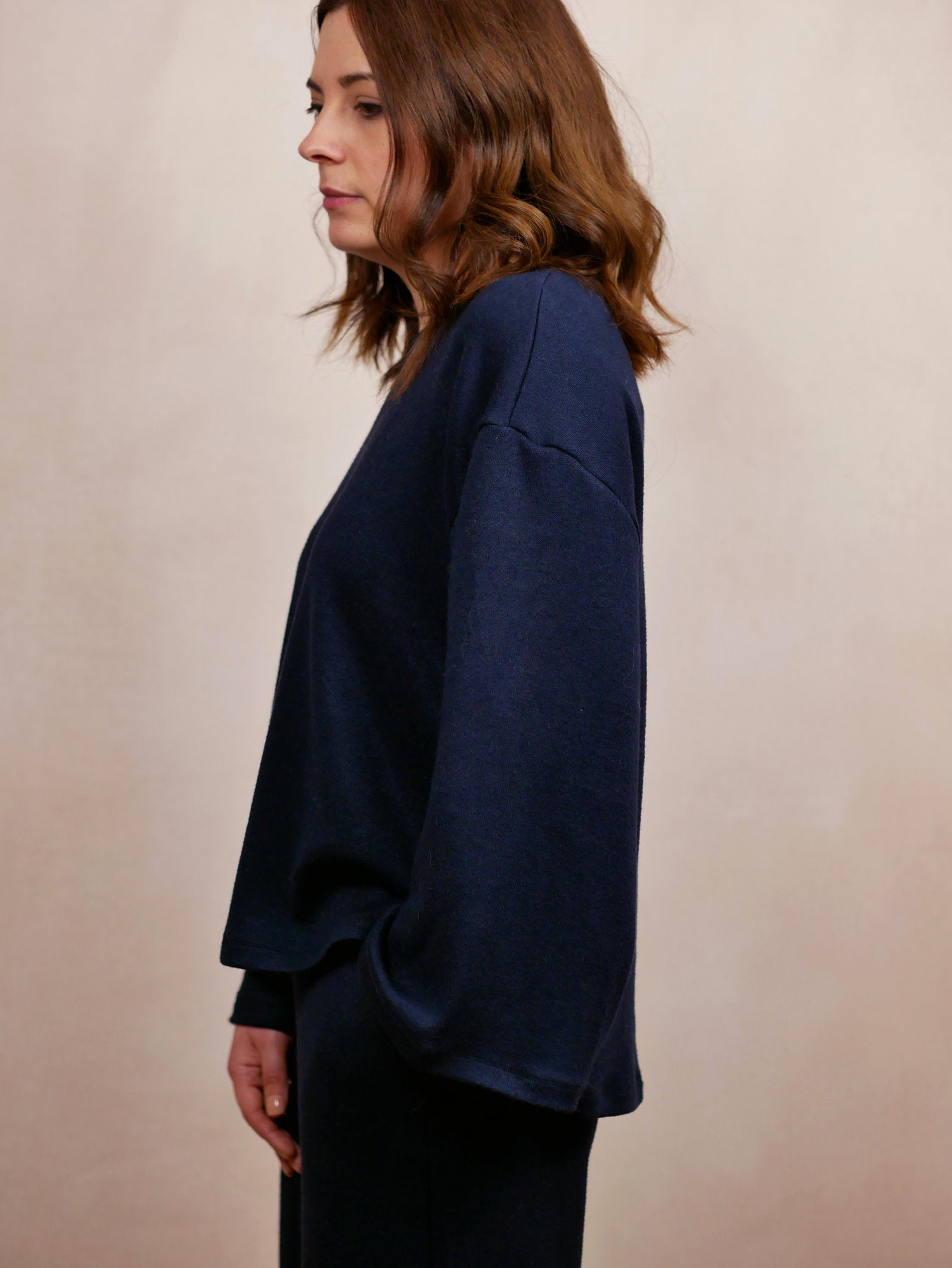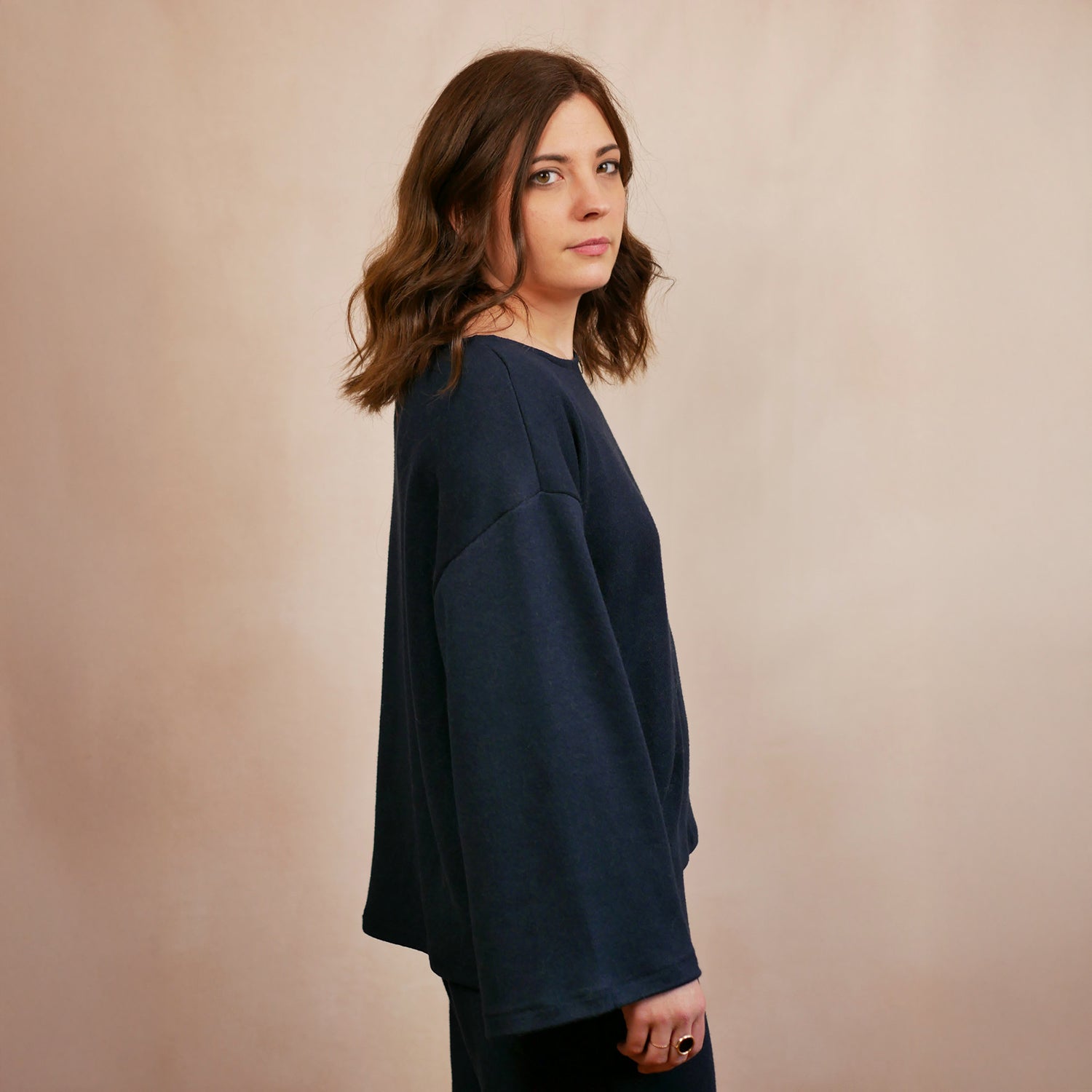 Son petit plus : son bracelet de manche avec passe-pouce en option. Mais il propose également deux formes de manches : la manche classique ample mais pas trop avec bracelet en bord côte ou la manche large.