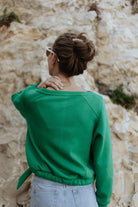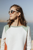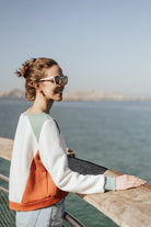 Le Sweat Sixteen est un sweat-shirt ample et confortable, qui se distingue par son jeu de découpe sur le devant et dans le dos, son encolure dégagée au niveau des épaules, et son ourlet plus court sur le devant pour flatter la silhouette quand il est porté avec des pantalons ou shorts (ou jupes!) tailles hautes. Ses manches longues classiques se terminent par un poignet resserré par un bracelet de manche.