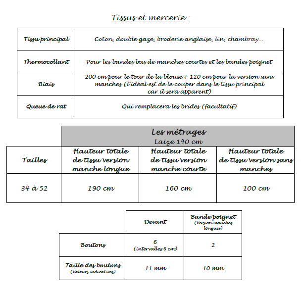 Pour vous accompagner dans votre projet, nous avons sélectionné les tissus et la mercerie adaptés à ce patron. Vous pouvez les retrouver dans "Complétez le pack couture".
