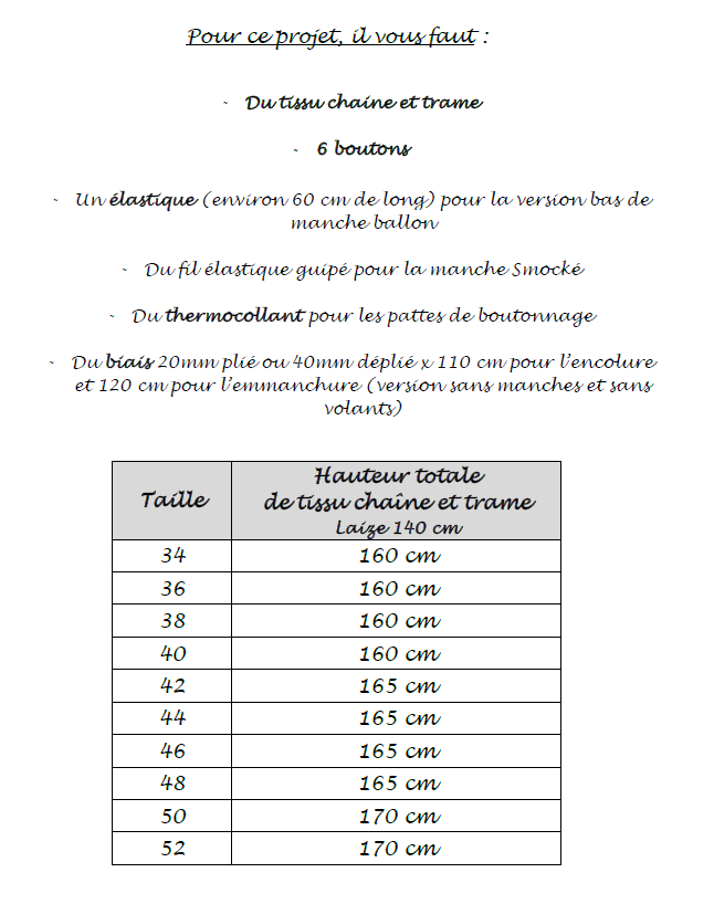 Pour vous accompagner dans votre projet, nous avons sélectionné les tissus et la mercerie adaptés à ce patron. Vous pouvez les retrouver dans "Complétez le pack couture".