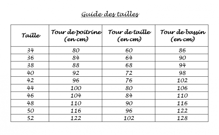 👉 Guide des tailles