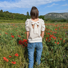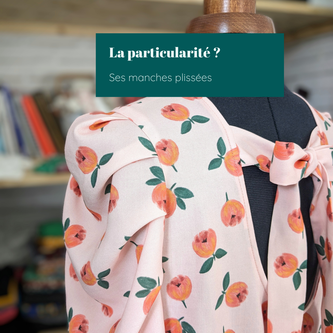 La Blouse Quetzal incarne la féminité avec son décolleté plongeant et ses courbes arrondies dans le dos, sublimées par un délicat nœud qui retombe gracieusement. L’élégance de cette blouse réside dans ses manches bouffantes, créées par un jeu de plis plats à l’avant et à l’arrière. Pour la version estivale, les manches sont courtes et le dos est dénudé, mais il est également possible de réaliser une version à manches longues ou encore un dos moins échancré, sans nœud.