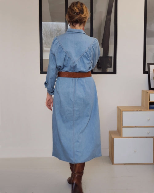 Dans les deux cas, en robe comme en version chemise, les 2 empiècements en V devant et dos, souligné par des fronces, en font une pièce stylée et féminine.