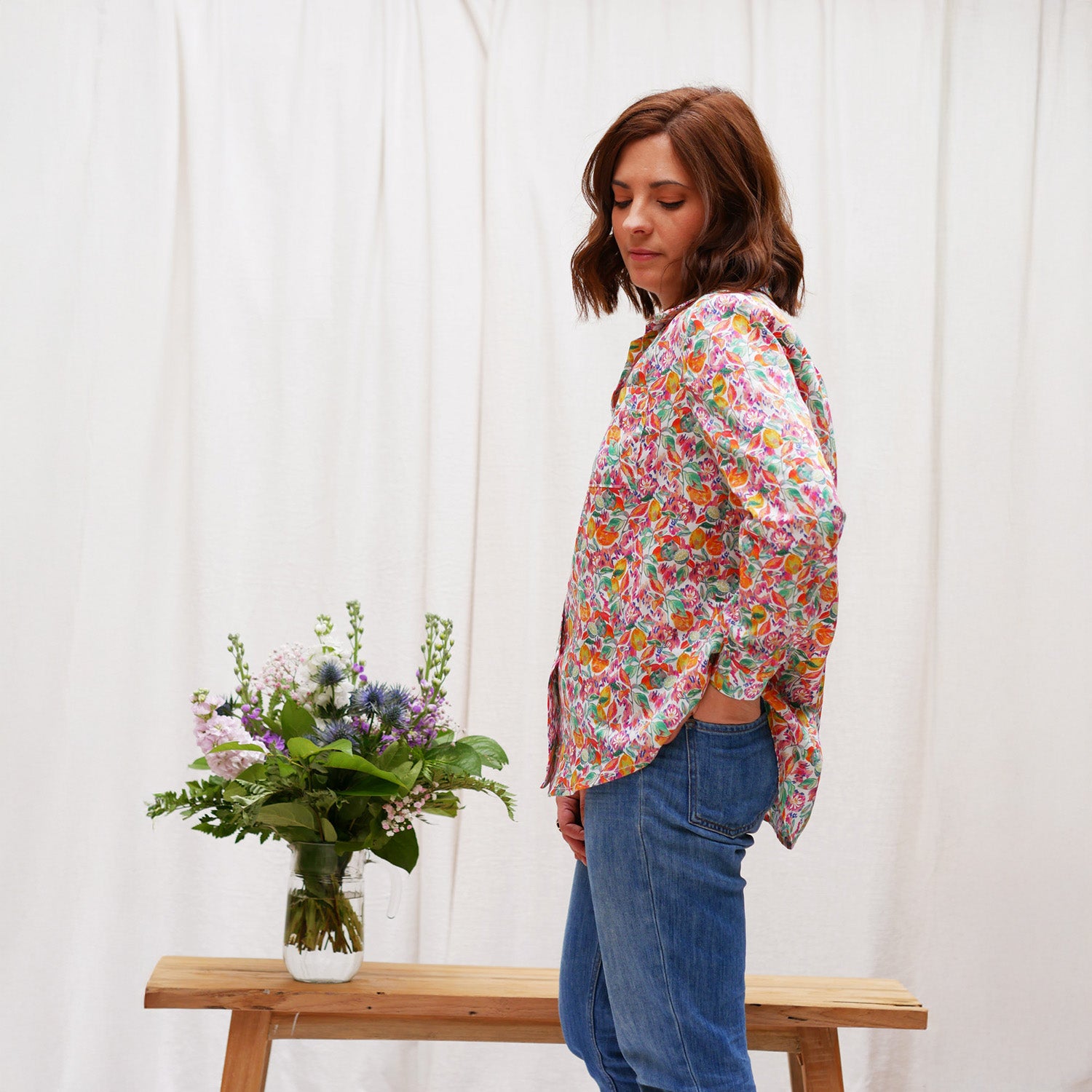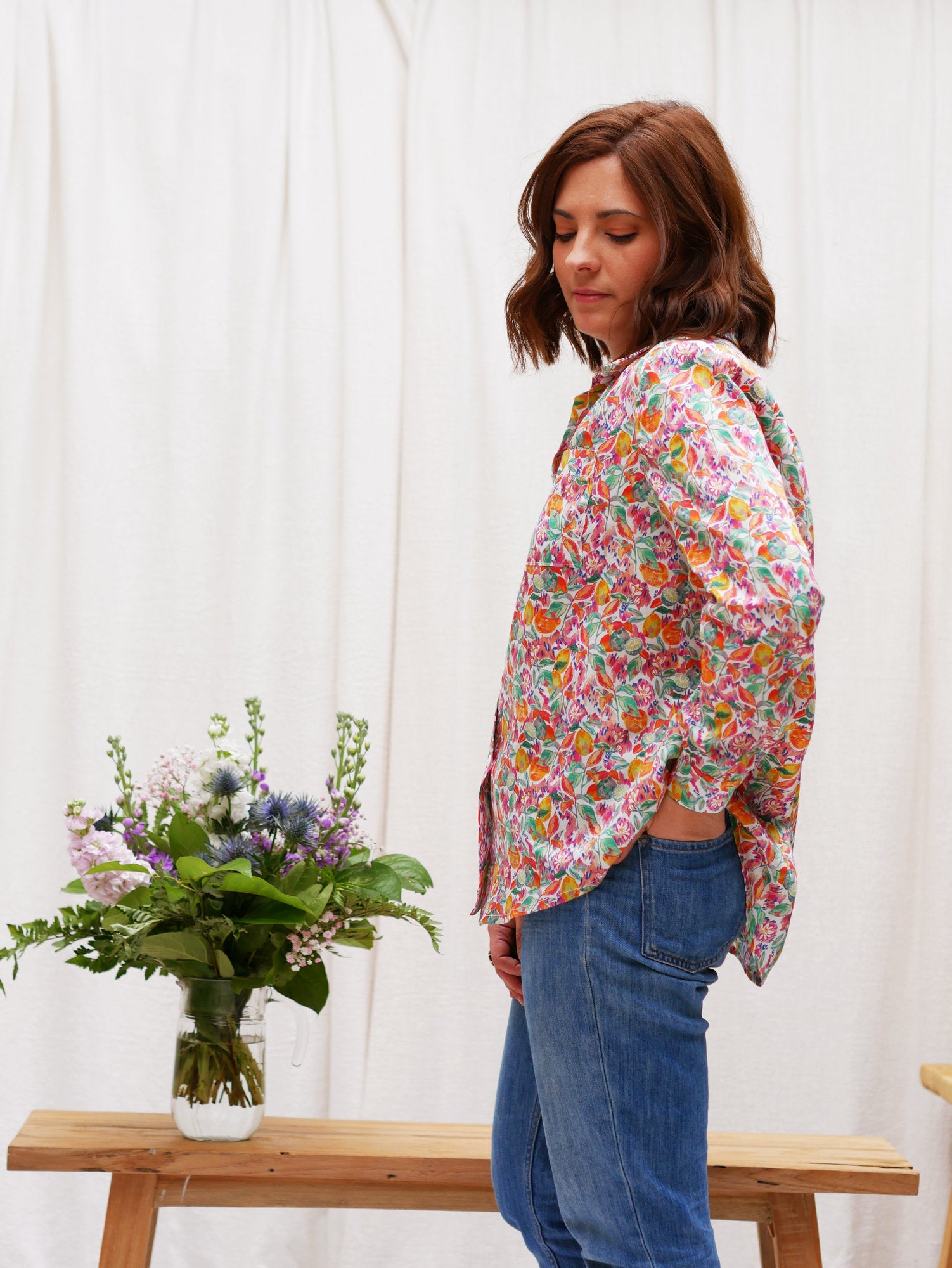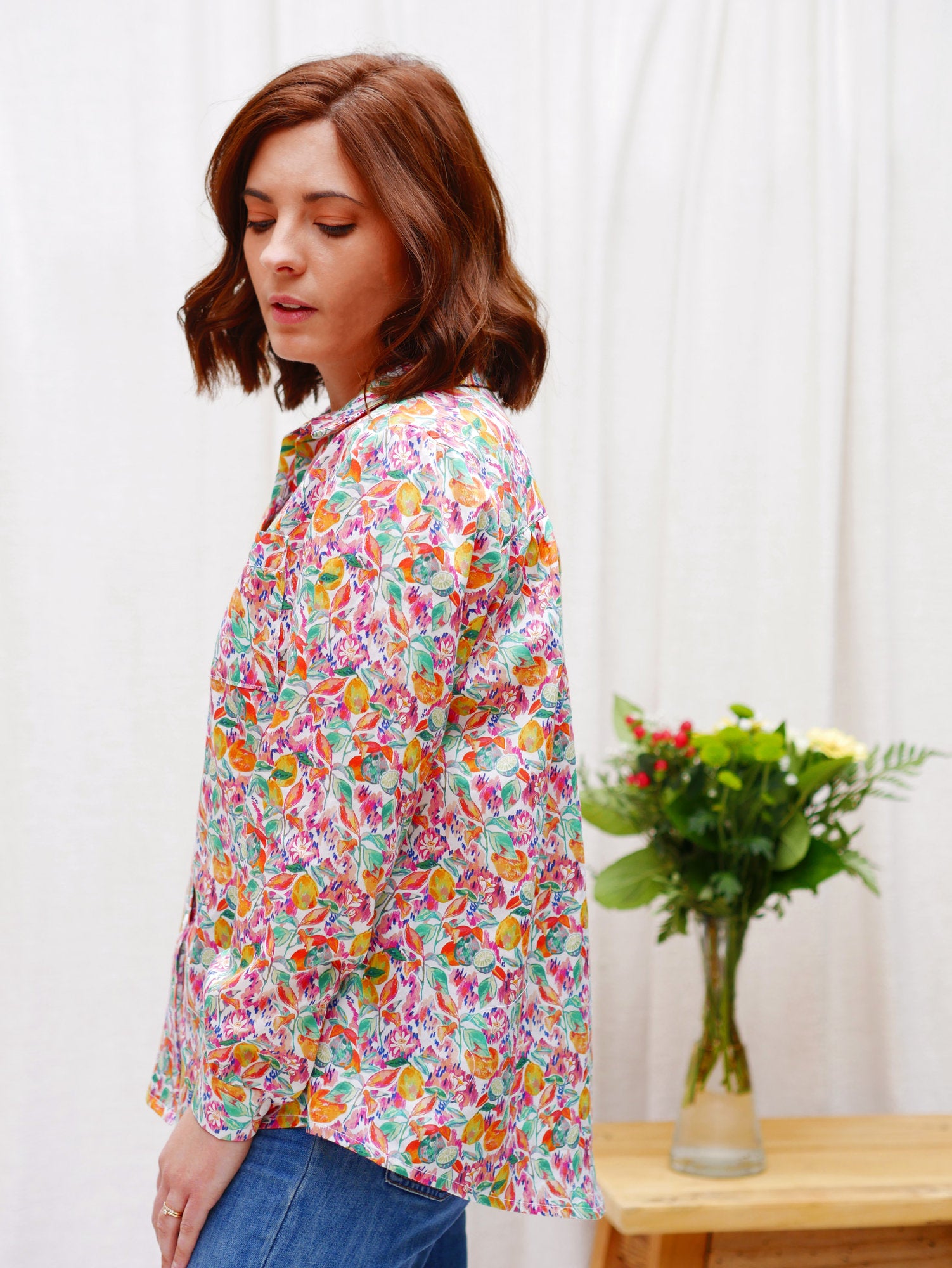 La chemise Toscane c’est un patron aux multiples possibilités. Une base de chemise liquette “oversize” avec son empiècement dos qui revient sur les épaules et ses poches plaquées.