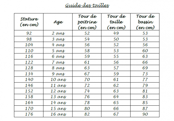 👉 Guide des tailles