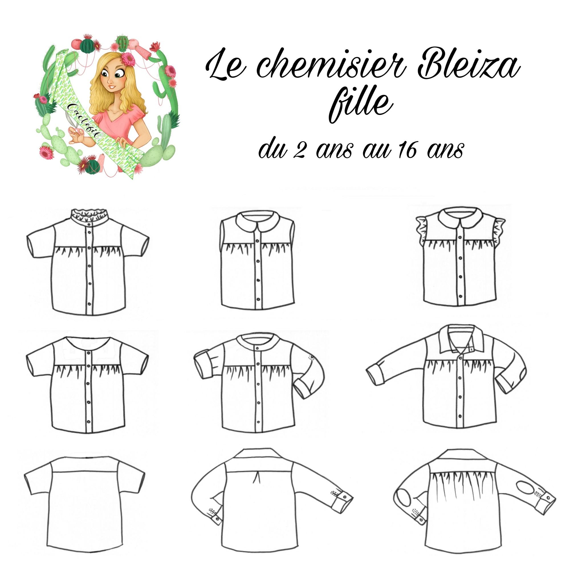 Le patron PDF BLEIZA de Cactofil est un joli chemisier pour fille, proposé du 2 au 16 ans. Ce modèle féminin et confortable se distingue par son col élégant et ses finitions délicates. Il se décline avec des manches longues ou courtes, pour un usage toute saison.
