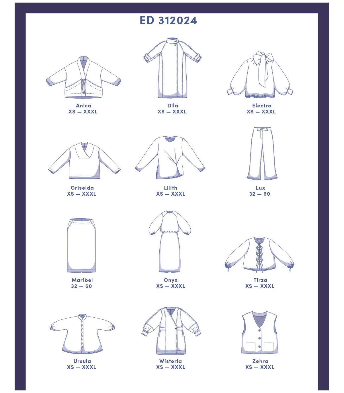 Autres modèles : Griselda, Lilith, Maribel, Tirza, Ursula et Wisteria, offrant une variété de styles pour compléter votre garde-robe.