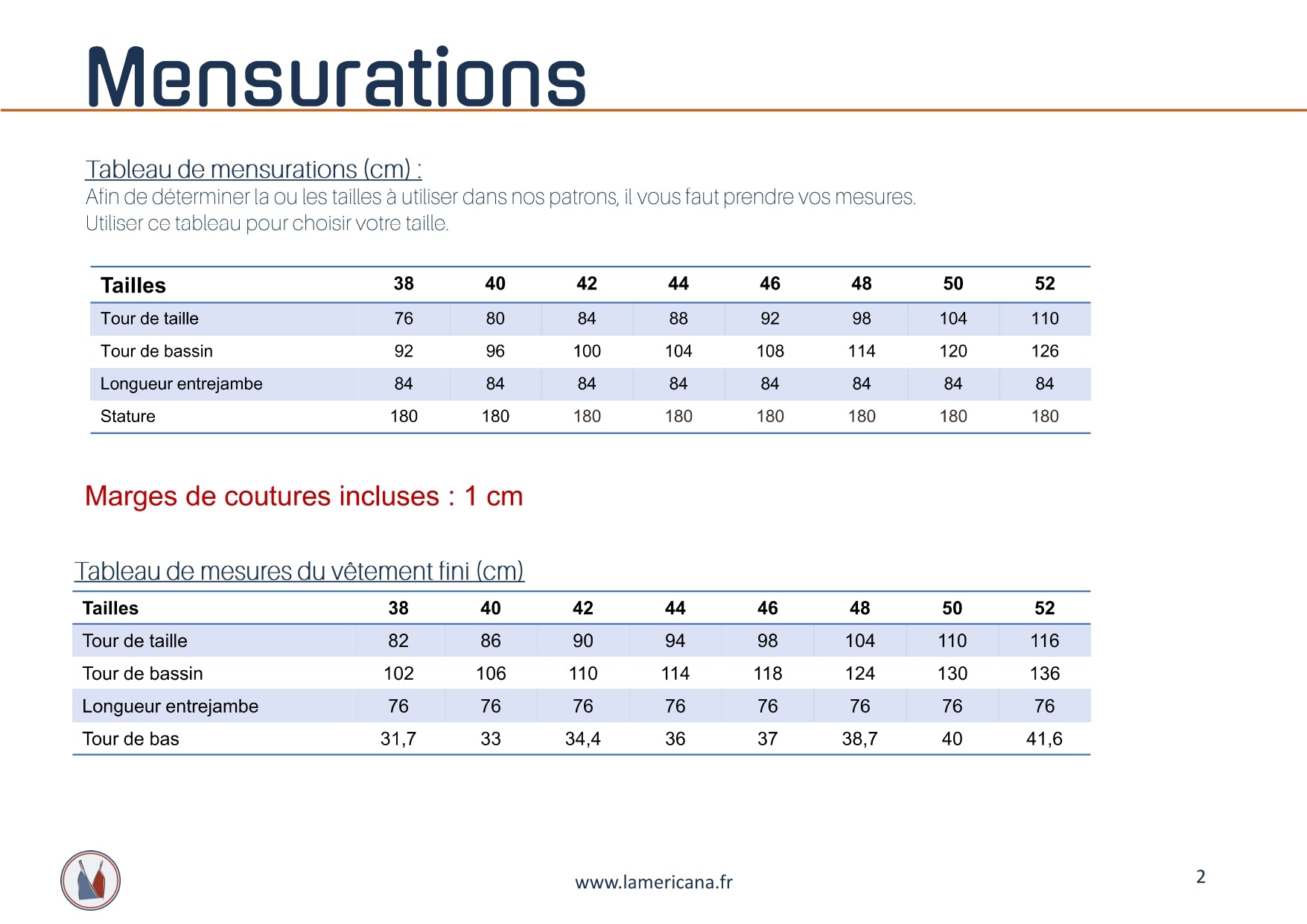 📏 Tailles : selon le barème homme de Lamericana Pattern