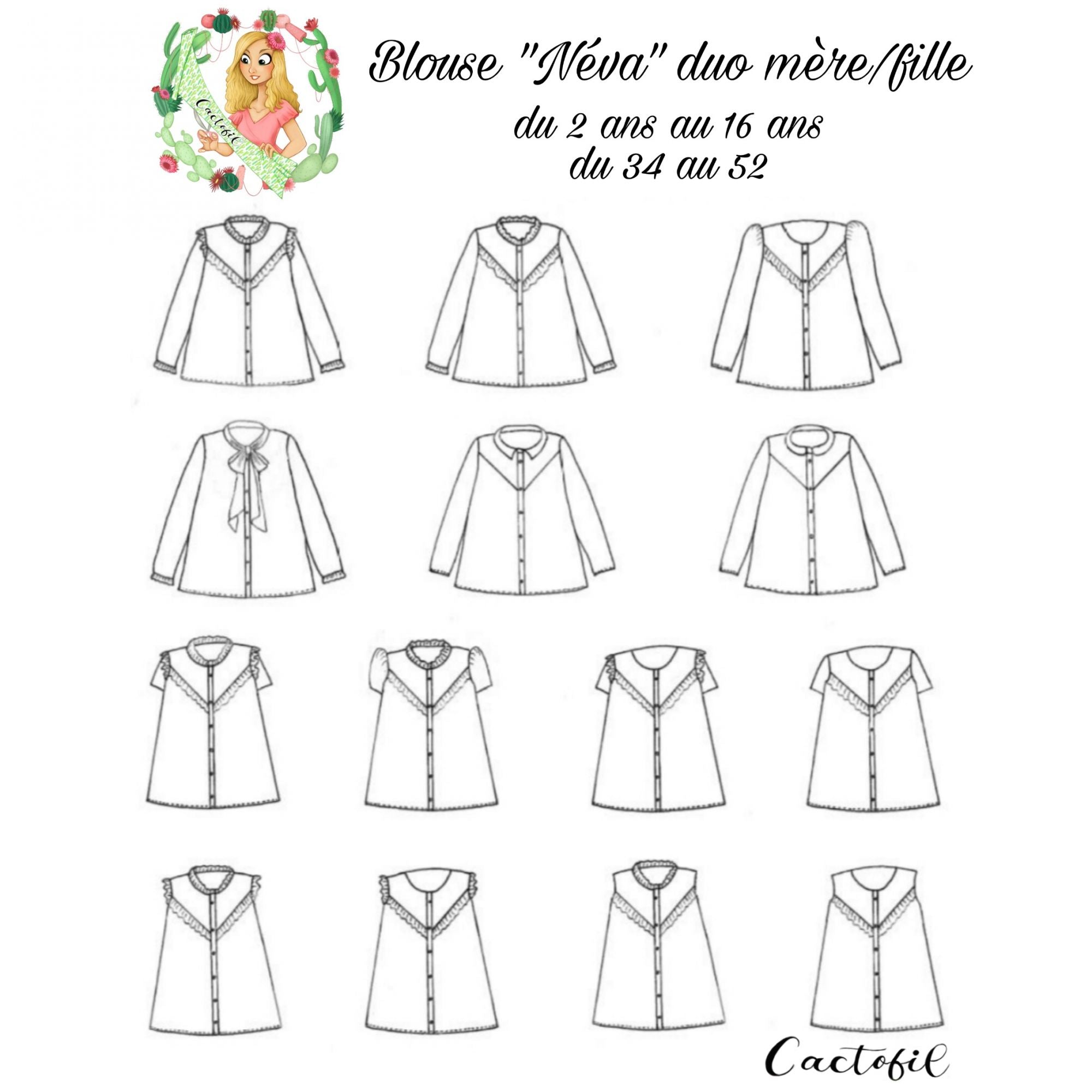 Blouse Néva Duo mère / fille – Patron PDF - CACTOFIL