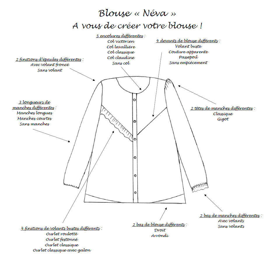 La blouse Néva de Cactofil est un patron PDF délicat et féminin, conçu pour mettre en valeur les jolis détails couture. Avec son encolure arrondie, ses manches longues froncées et ses finitions soignées, Néva est un modèle à la fois simple à porter et élégant.