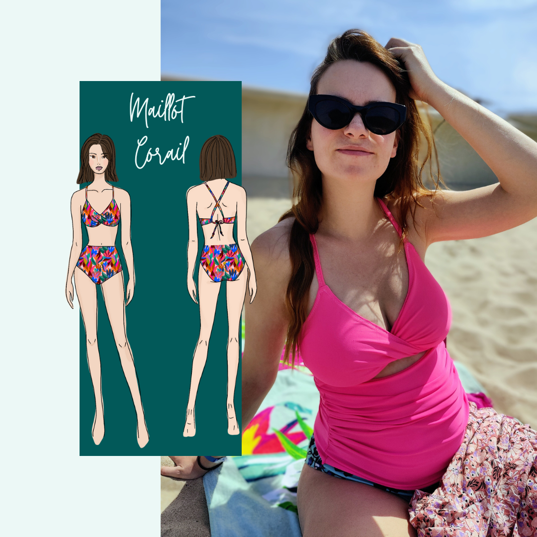 Le Maillot Corail est composé des patrons du Tankini (Bikini) et de la Culotte Corail.