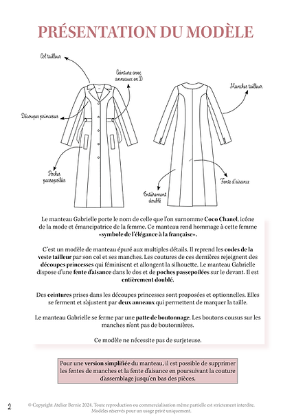 Patron de couture PDF Manteau Gabrielle - ATELIER BERNIE