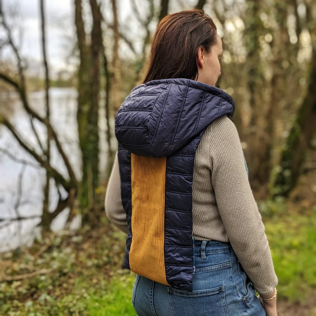Pour coudre Beira, il vous faudra un tissu extérieur, idéalement déperlant et un tissu doublure confortable à porter. Pour l’extérieur, il est possible d’acheter du matelassé doudoune ou de l’imperméable que vous matelasserez vous-même avec de la ouatine (cela est expliqué p.8).