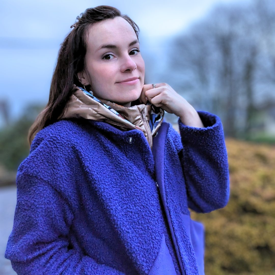 La capuche de Beira est large et couvrante, ainsi elle peut être portée même avec une coiffure volumineuse.