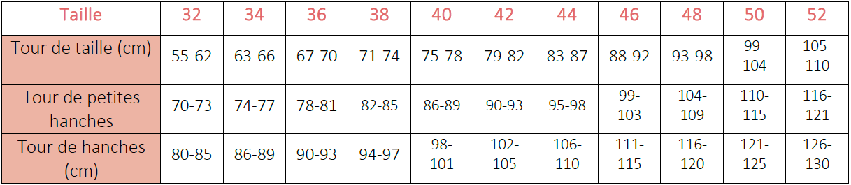 Les mesures les plus importantes pour ce modèle sont la stature, le tour de taille et le tour de hanches.  Si vous hésitez entre 2 tailles, prenez la taille la plus grande pour une version en chaine et trame, la taille la plus petite pour une version en tissu extensible.