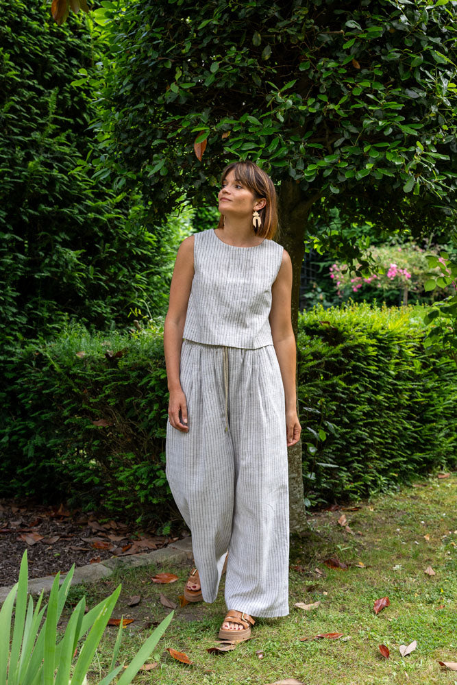 Nous conseillons de le coudre dans des matières fluides pour garder la souplesse et la légèreté de sa ligne, telles que la viscose, le crêpe léger, la soie, le tencel, le lin, le lin viscose, ou encore le lyocell, qui vous permettront de sublimer toutes vos versions, mais aussi d’avoir un pantalon parfait en toute occasion !