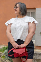 Shaun se décline facilement en top, un biais vient se positionner joliment sur l’encolure et les emmanchures, une patte de boutonnage ferme Shaun au dos. Idéale pour les journées estivales elle permet de rester élégante tout en étant confortable, selon les tissus utilisés et les accessoires elle peut convenir à toutes les occasions.