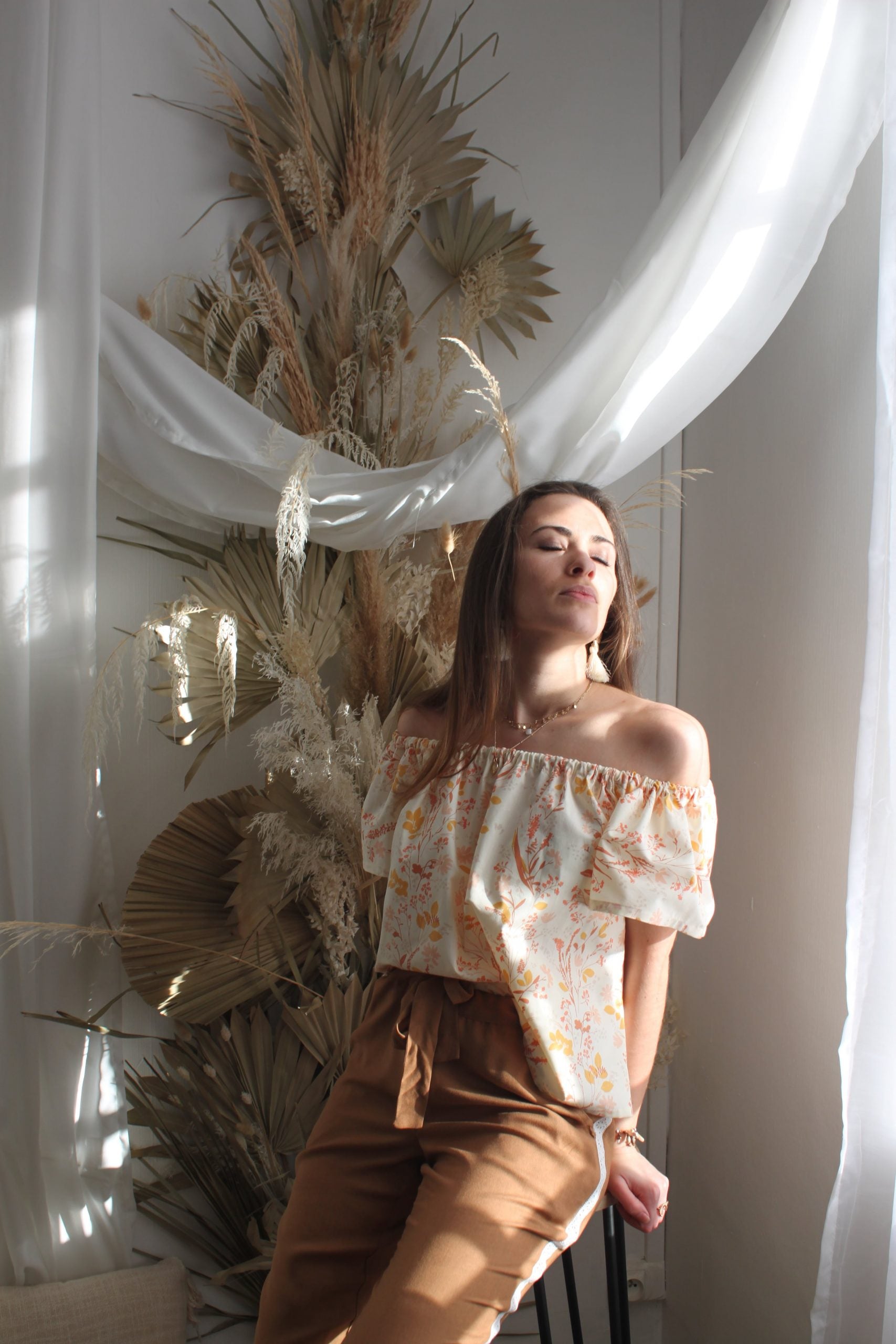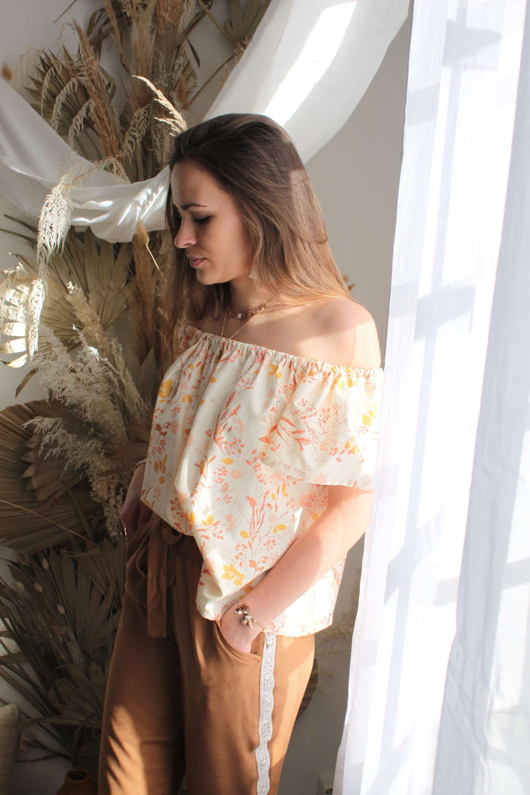 J’ai réalisé mon top dans un coton, tu peux réaliser la tienne dans la matière que tu veux, une viscose, un satin, un chambray, un plumetis, une popeline, un tencel, une mousseline, une broderie anglaise…