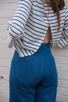J’ai réalisé mon pull dans une maille marine, tu peux utiliser pleins d’autres type de maille, comme un jersey, du sweat, du sweat torsadé, une maille viscose, une maille côtelée, une maille jaquard …