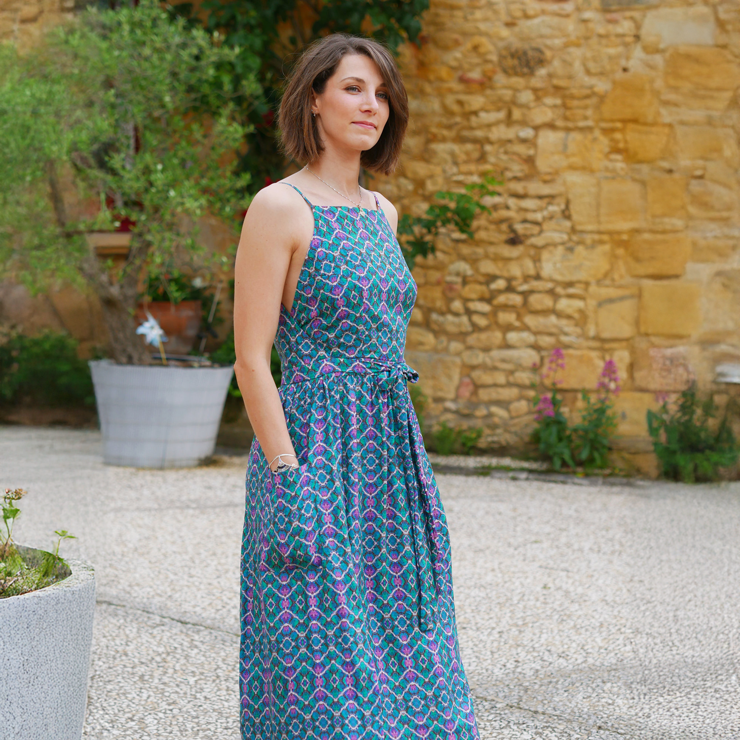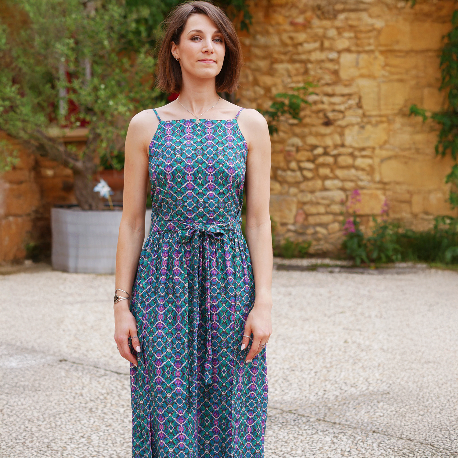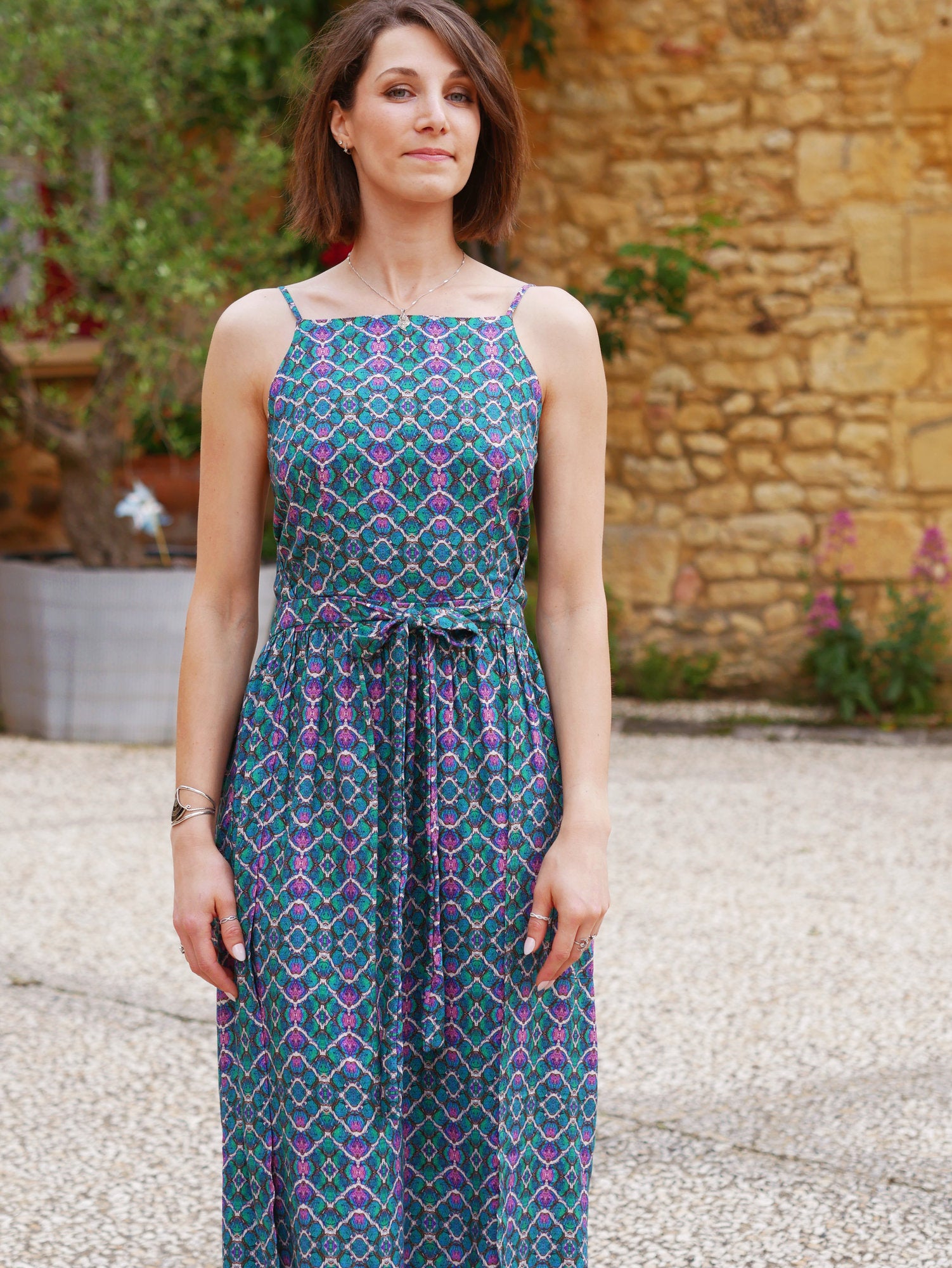 Emy, c’est la petite robe estivale parfaite. Alliant singularité et confort elle vous accompagnera tout l’été. Elle se caractérise par un haut à bretelles, deux pans de jupe froncés s’attachant avec une ceinture à nouer.