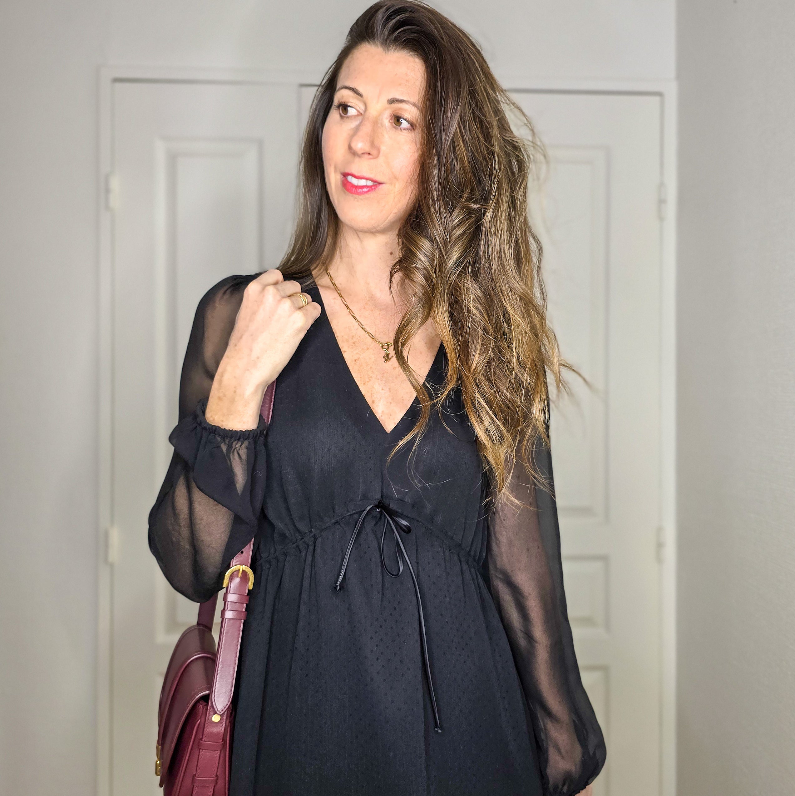 Elle propose des manches courtes ou longues bouffantes, ainsi qu’une option de maxi volants de manche pour un style unique et moderne. Des poches discrètes sont intégrées dans les coutures pour plus de praticité.