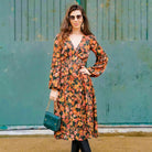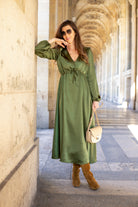 La robe Eloane allie élégance et confort, avec son décolleté en V et sa silhouette fluide qui épouse harmonieusement les formes. Sous la poitrine, un système de coulisse avec lien à nouer ou un élastique discret permet d’ajuster la taille pour un effet sur-mesure.