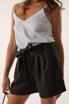 Les 2 plis sur le devant et la ceinture nouée lui apporte féminité et raffinement.