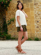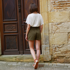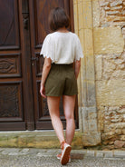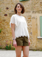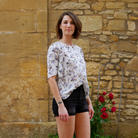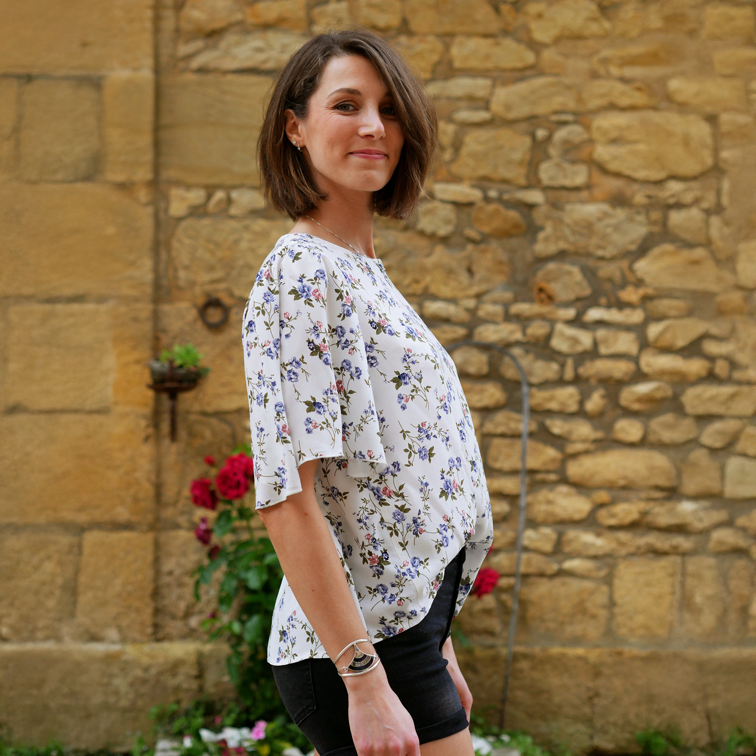 Le top Libeccio c’est un top délicieusement féminin et aérien. Il sera parfait pour une tenue d’été élégante et confortable. il se caractérise par de longues manches papillon, une encolure ronde et une ouverture au dos fermée par une bride et un bouton. Sa coupe ample sera idéale pour être portée par dessus un short ou un jean mais pourra également se porter rentrée dans un bas en la blousant, ce qui allongera la silhouette. Un tissu fluide et souple ou une dentelle seront tout indiqués pour sublimer ce modèle.
