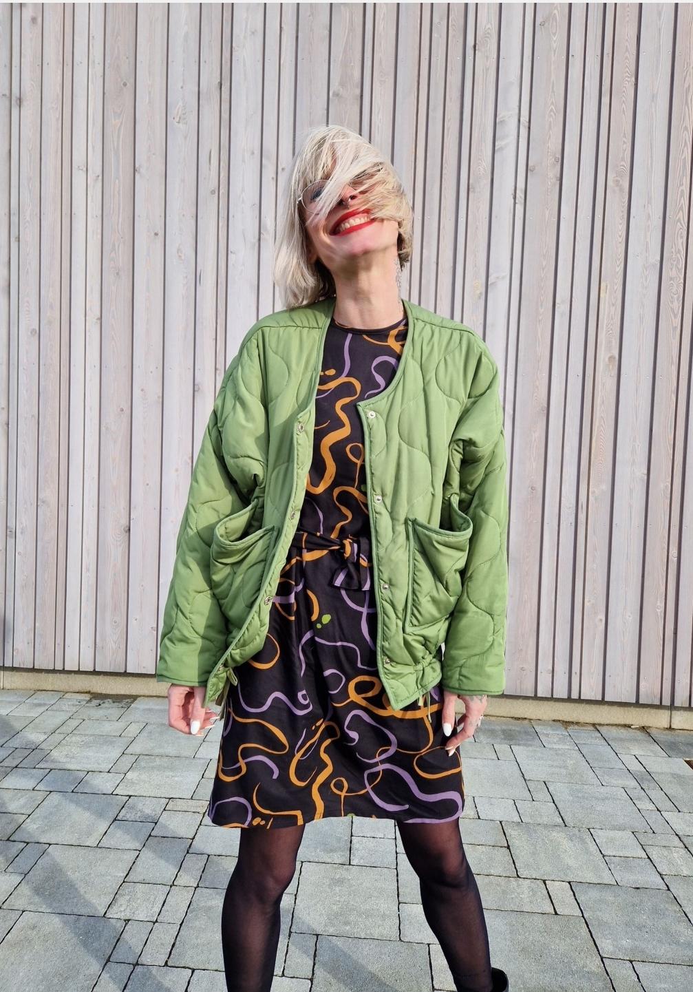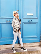 Infinity est une veste courte très oversize. J'ai revisté le bombers type en modifiant certains