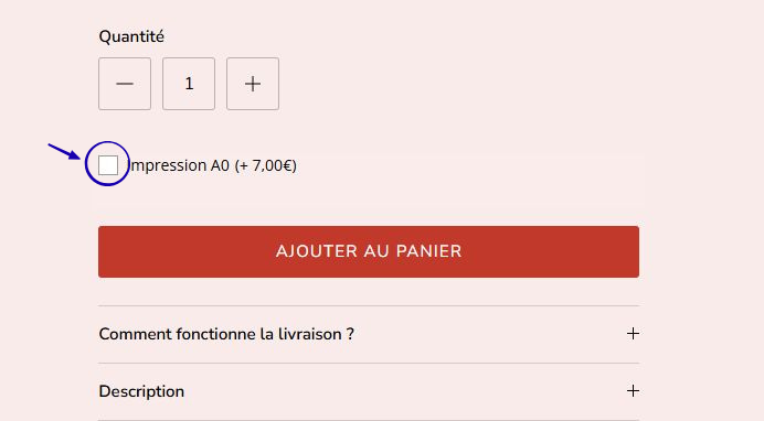 Pour chaque patron PDF vendu sur le site, vous pouvez cocher l’option “Impression A0” juste avant l’ajout au panier.