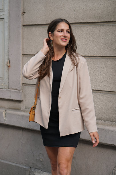Le blazer Alexandra possède une coupe droite légèrement oversize, un col tailleur très fin et des poches passepoilées. Vous pouvez choisir de le structurer avec des épaulettes si vous le souhaitez.