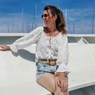 Sofia est la blouse bohème à l’allure ultra féminine et parfaite pour le printemps été. Cette blouse vaporeuse aux manches raglan longues et bouffantes ou aux manches courtes papillon mettra de la légèreté et de la fluidité dans votre garde-robe.  Sofia se décline aussi en Crop top et peut être fermée sur le devant ou ouverte avec des liens à nouer.