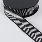 Ajoutez une touche élégante et moderne à vos créations avec cette sangle décorative blanc/noir agrémentée de fils lurex argentés. Sa largeur de 38 mm et sa belle tenue en font un ruban aussi polyvalent que résistant.
